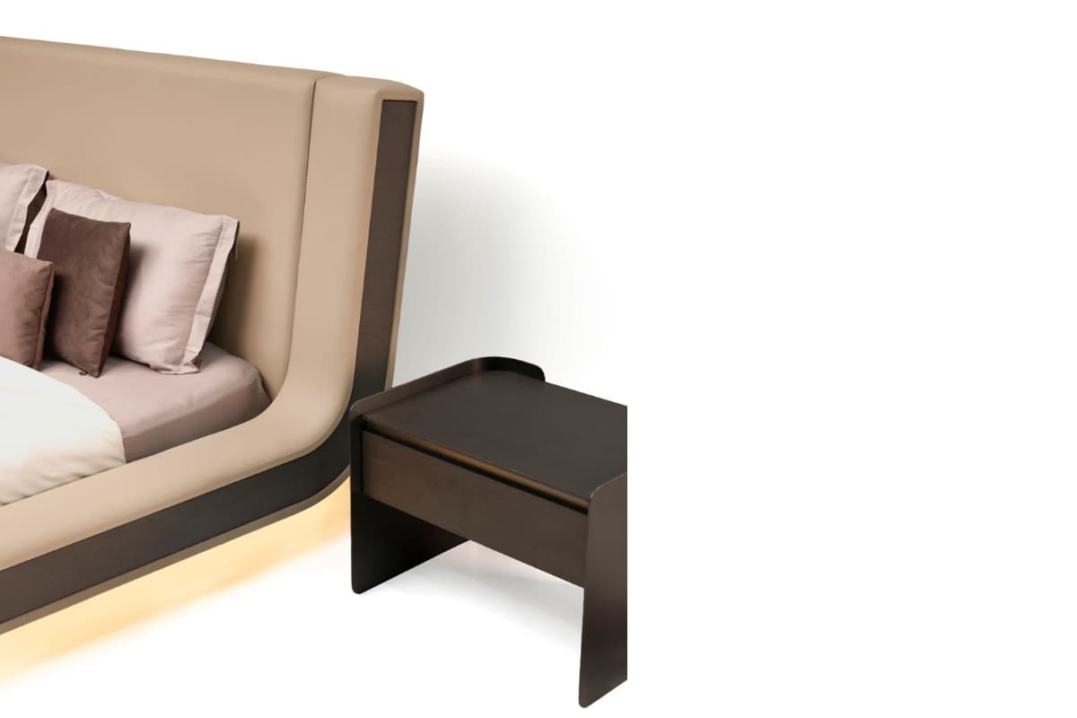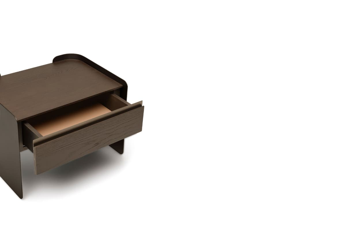 Plato serisinin ana unsuru olan bükümlü metal levhalar, sıcak ahşap tonlar ve oval formların keskin bitişleri; hem modern hem de yalın bir tasarım dili oluşturur. Güçlü metal ayaklarda Q Home koleksiyonundaki metal seçenekleri sunulurken, ahşap yüzeylerde ise çeşitli alternatiflerle kombinasyon